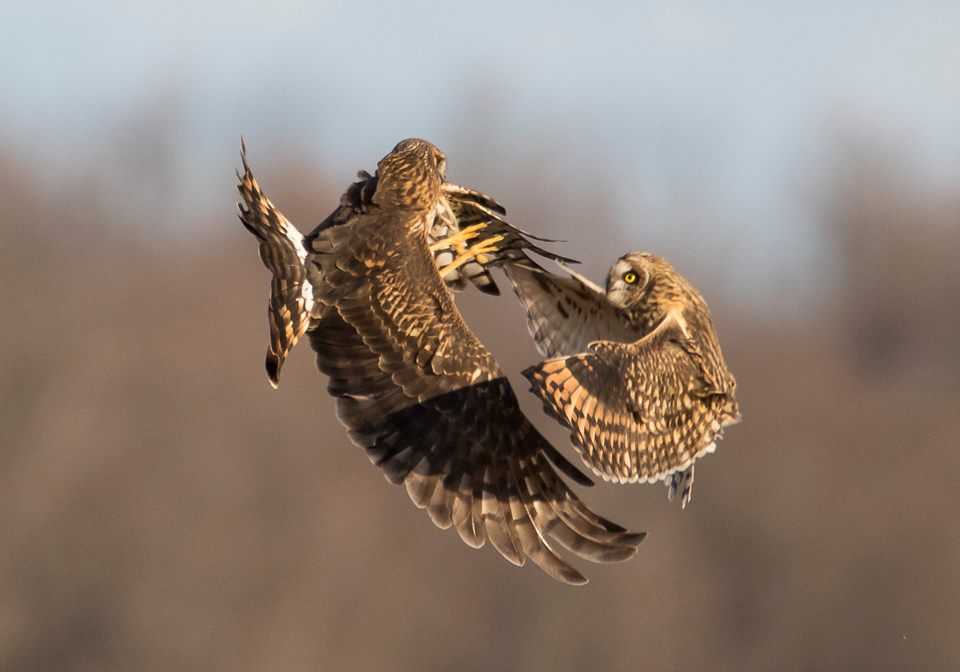 Если же враг нападает на гнездо совы, то она старается преградить ему путь, чтобы защитить птенцов. Она хлопает крыльями перед мордой хищника, периодически взлетает вверх и затем обрушивается на него, хватая когтями. Обычно таких мер оказывается достаточно.