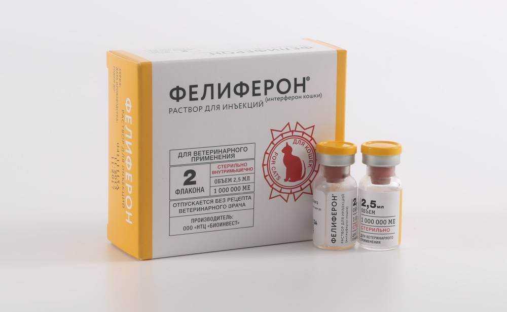 | Фелиферон | Интерферон кошачий, уксусная кислота ледяная, натрия ацетат, натрия хлорид, полисорбат, натриевая соль ЭДТА, декстран, вода для инъекций. | Раствор для инъекций во флаконах по 2,5 мл. В упаковке может быть 1, 2 или 5 флаконов. | Внутримышечно. | Фелиферон – раствор с противовирусным действием. Уколы назначают при лечении вирусных патологий желудочно-кишечного тракта, респираторных болезней, а также инфекций смешанной этиологии у животных. При высоком риске заражения инъекции делают для профилактики. Допускается сочетание препарата с антибактериальными, иммуномодулирующими и сывороточными средствами. | Стоимость упаковки зависит от количества флаконов, поэтому составляет от 400 до 1400 руб. |