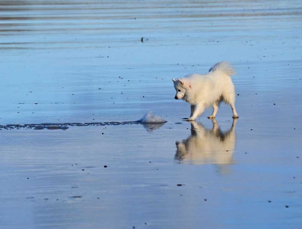 Мех японского шпица отталкивает пыль и влагу. Описание породы включает чистоплотность – на улице собака обходит лужи и грязь, поэтому шубка практически не пачкается. Купание требуется всего раз в 2 месяца. Этого количества хватит, чтобы сохранить шерсть белоснежной.