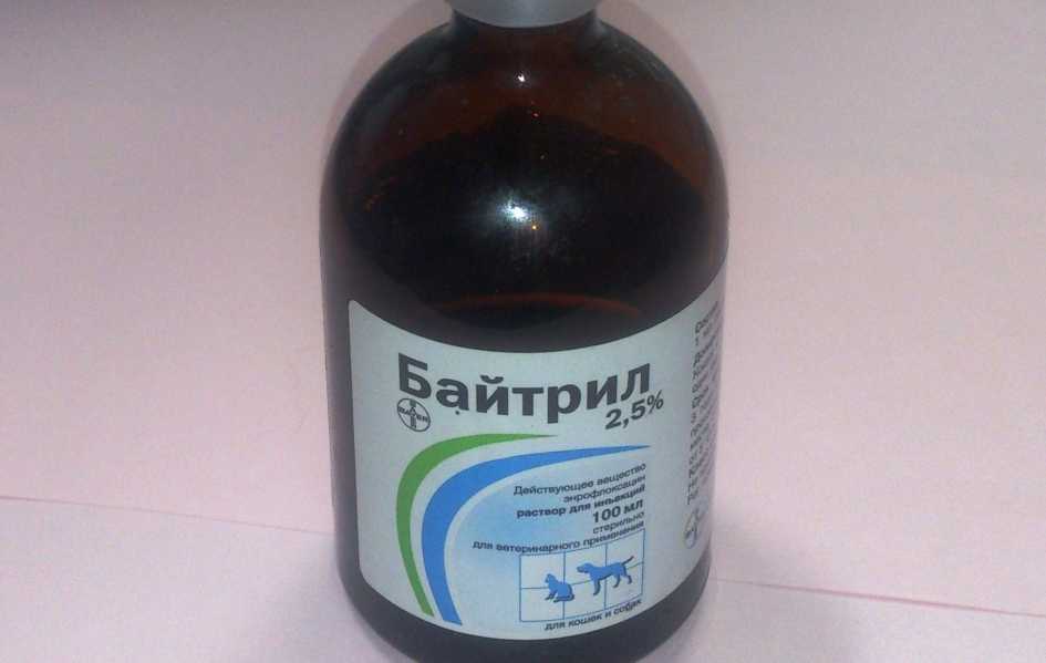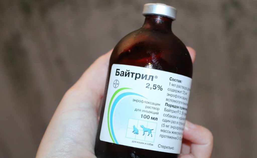- в 1 мл раствора Байтрил 10 – 100 мг антибиотика;