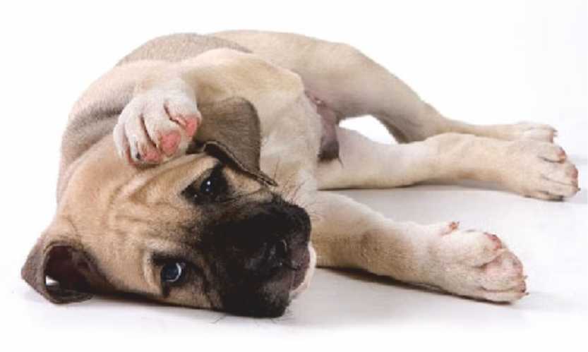 - Периодически усиливающаяся болезненность в области желудка. Животное скулит, часто оборачивается в направлении своих боков, лижет их, покусывает, скулит.