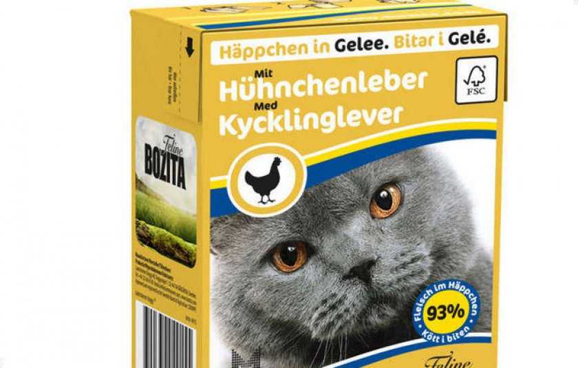 Тетра-паки — коробочки из специального шестислойного материала (полиэтилен, картон, снова полиэтилен, алюминиевая фольга и еще 2 слоя полиэтилена), позволяющего обеспечить максимальное сохранение всех полезных свойств корма без дополнительного охлаждения.
