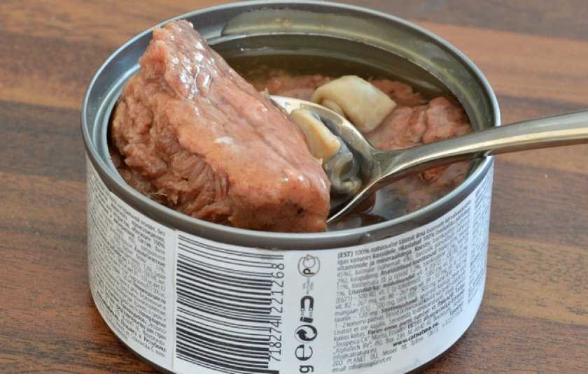 Когда малыши начинают питаться самостоятельно, они уже вполне в состоянии справиться с цельным кусочком мяса в составе консервов и с огромным удовольствием это делают.