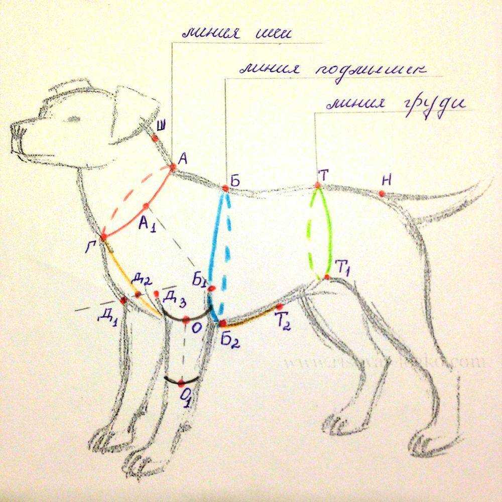 - обхват грудины в наиболее широком месте сразу за локтями передних лап (дополнительно можно добавить пару сантиметров);