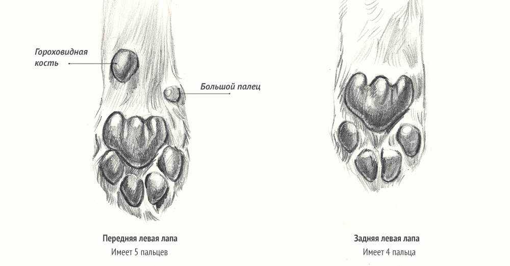 Сколько пальцев на лапе у собаки? Прибылой палец