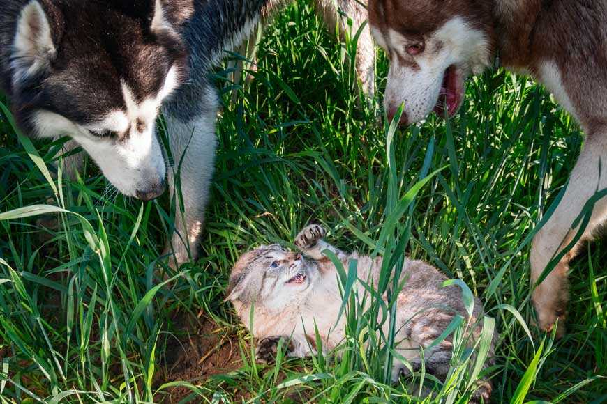 Гончие, терьеры, борзые, а также некоторые «универсалы» вроде лаек — все они могут воспринимать любую мелкую живность как объект охоты и принести кошке вред, если увлекутся и инстинкты возьмут над ними верх. Однако тут надо понимать, что инстинкты инстинктами, но помощниками на охоте собаки становятся не сами по себе, их обучают, и если щенок в своё время не прошёл такого обучения, называемого натаской, то максимум что он может сделать, — это просто гонять всё, что движется.