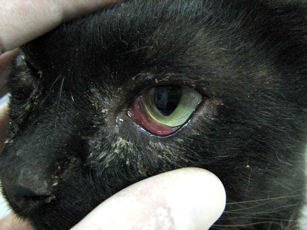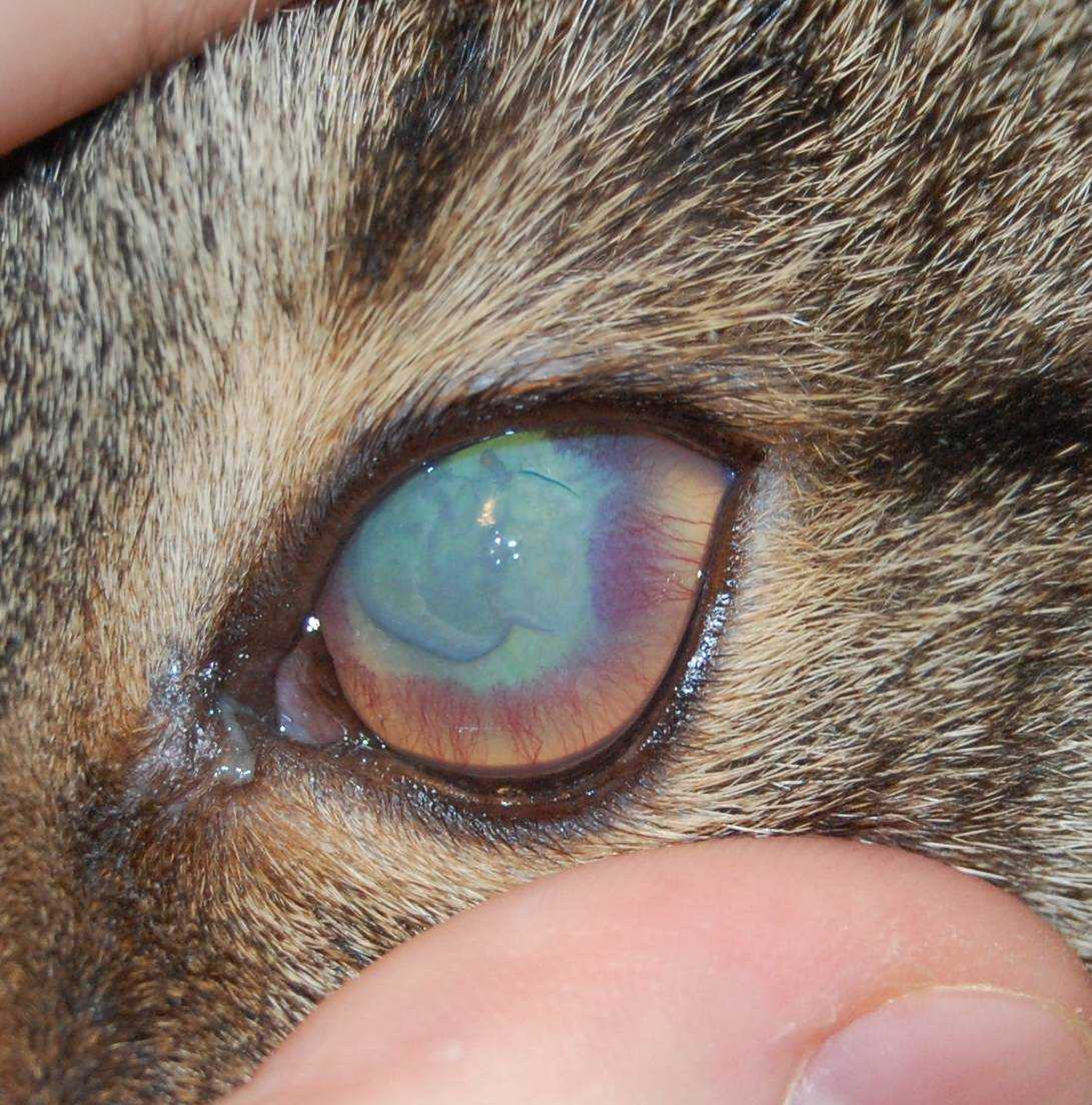 Редкое, но очень опасное заболевание глаз у кошек и собак. Характеризуется тем, что инфекция поражает глазное яблоко и веки целиком. Сначала глаз увеличивается в размерах, начинает гноиться и лысеть. Особую опасность составляет не в самом высоком риске потерять глаз как таковой, но и в том, что инфекция при панофтальмите у кошки очень быстро проникает в мозг и чаще всего приводит к гибели животного.