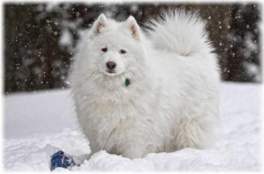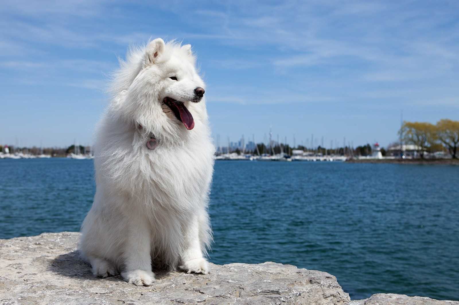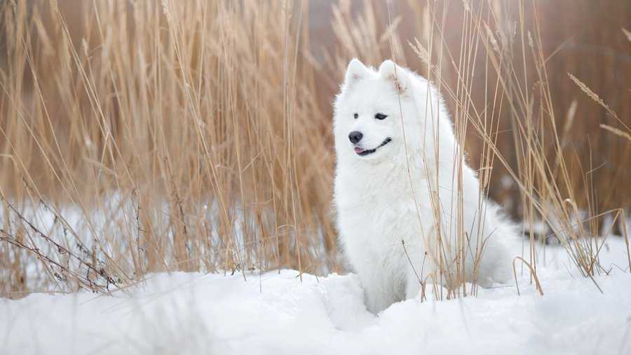 Самоедская лайка – красивая собака с густой шерстью белого или кремового цвета. Страной происхождения считается Россия. Густая теплая шерсть помогала людям согреться. Когда человек обнимает собаку, животное замирает и старается не шевелиться, чтобы не потревожить хозяина.