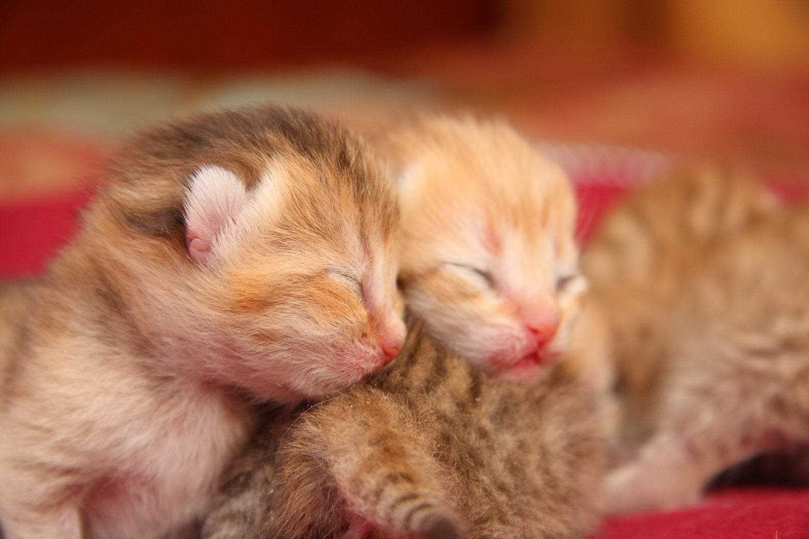 Новорождённый котёнок чаще всего имеет вес, который не превышает ста двадцати граммов. Он ещё слеп и по большей части обездвижен. Всё, что он может — это питаться, подрастать и высыпаться. Пребывая в таком режиме, малыш может набирать до 15 граммов за день.