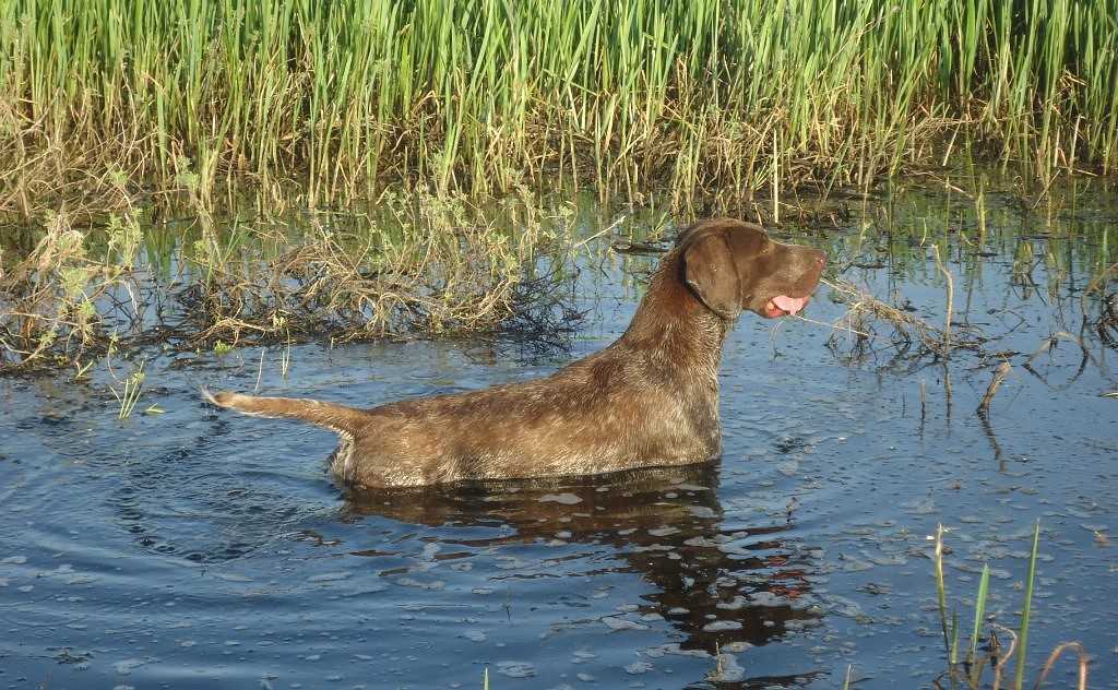 В теплое время года разрешайте собаке купаться в водоемах, ведь курцхаары обожают воду.