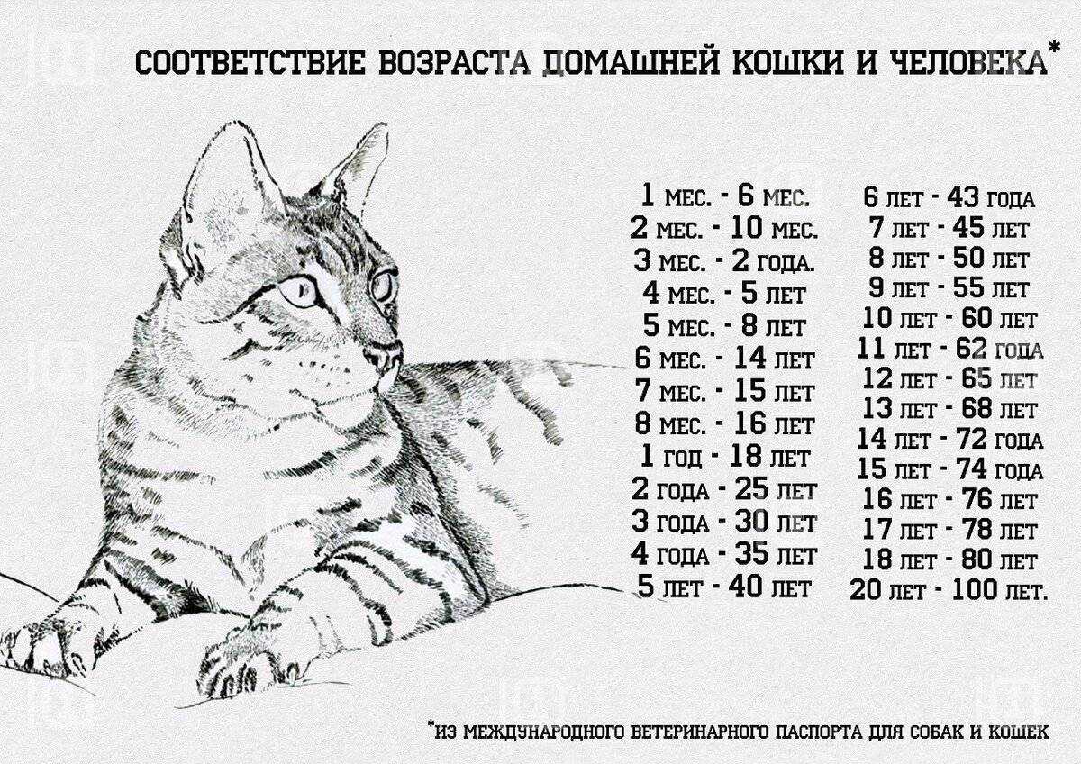 Считается, что кошка становится взрослой, когда ей исполняется год, хотя рост может продолжаться до 1,5 и даже 2 лет. Многое зависит от конституции. Длинношерстные и породы крупных размеров отличаются замедленным развитием. Естественный процесс старения начинается уже на 2-ой год жизни, поэтому точный возраст подопечного высчитать просто невозможно.