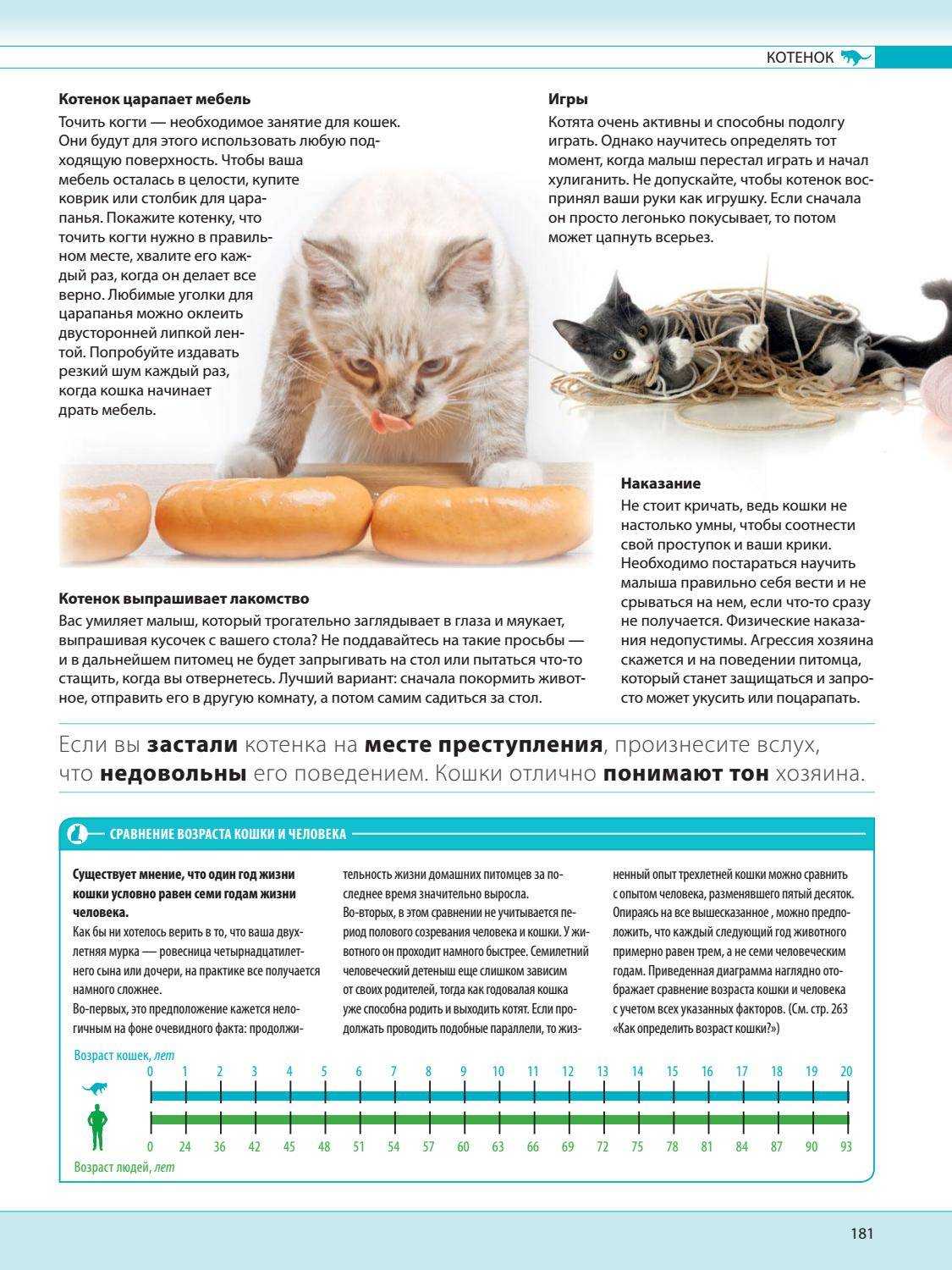 Не самый точный признак, поскольку половое созревание у разных животных может наступить в возрасте от 3 до 18 месяцев. Однако в большинстве случаев характерное поведение начинается в семь месяцев . Коты мяукают по ночам и метят территорию, у кошек проходит первая течка.