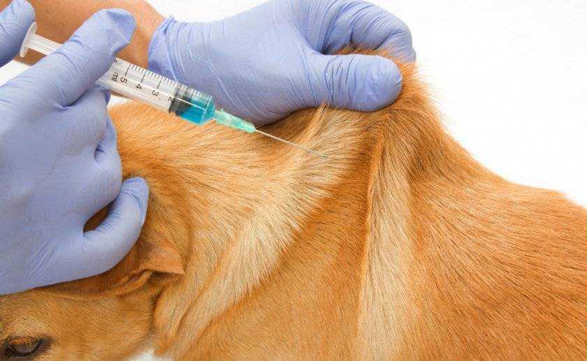 В редких случаях по индивидуальным показаниям делают укол собаке под лопатку.