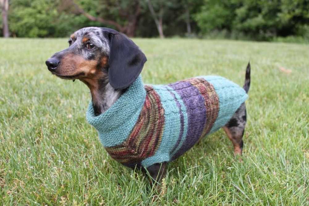 Важно, чтобы нитки не линяли, в противном случае собаку придется отмывать. Надевают свитера в межсезонье, когда уже сухо, но пока недостаточно тепло
