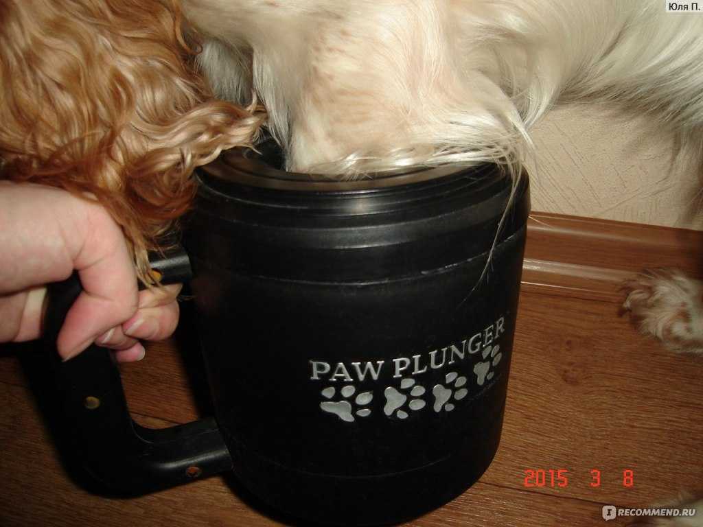Paw plunger — лапомойка для собак производства США, изготовленная в форме кружки с ручкой. Имеет разборную конструкцию, поэтому без труда можно брать с собой в дорогу.