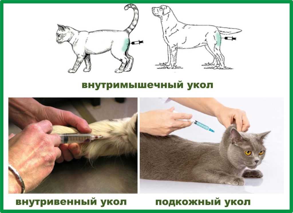 - Внутримышечные инъекции. Можно проводить самостоятельно по назначению ветеринара. Укол делают в область бедра.