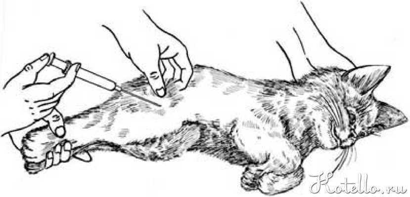 Подкожный способ применения лекарства – укол в область холки или складки на колене – простой и не менее действенный. При введении лекарства рекомендуется аккуратно оттянуть кожу, быстро ввести шприц и опорожнить его.