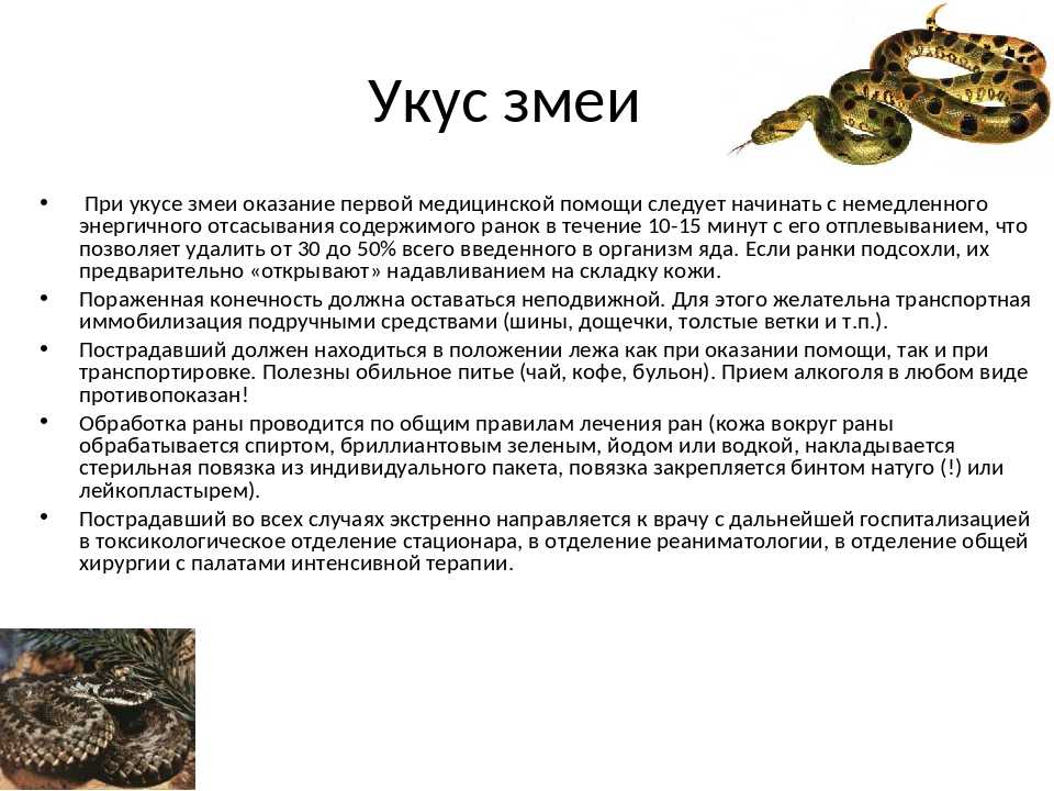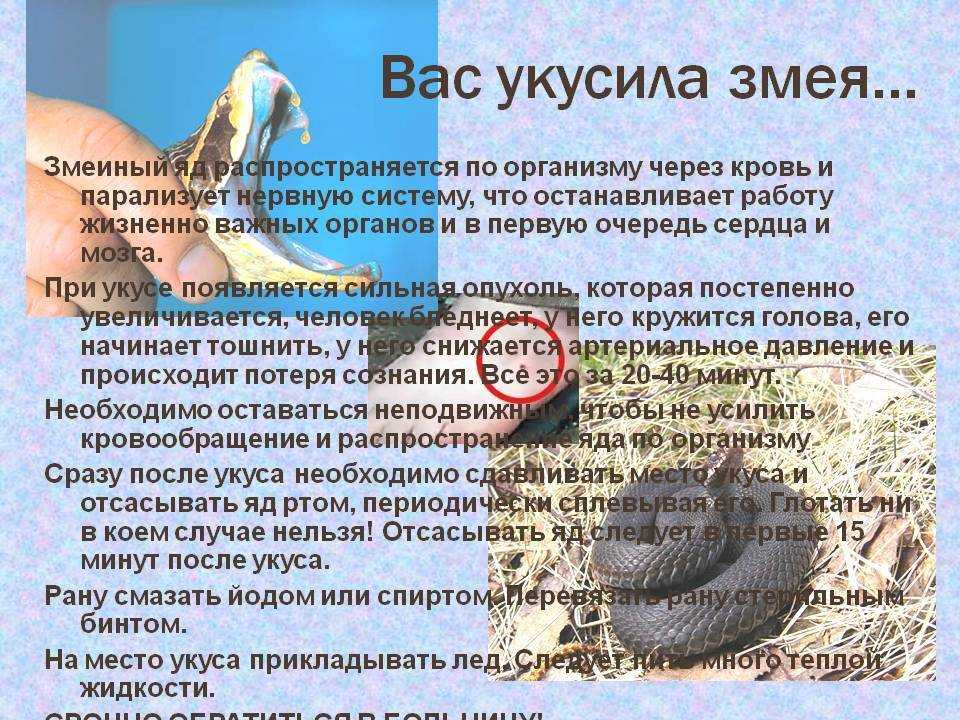 Укус змеи может привести к аллергической реакции или быть смертельно опасным, поэтому важно получить медицинскую помощь как можно скорее
