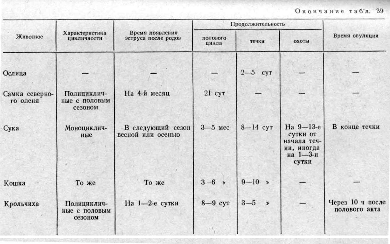 Первый эструс, как правило, характеризуется не только небольшой длительностью (5 — 7 дней), но и скудностью выделений. В ряде случаев владелец может не заметить клинических проявлений у питомицы в первую течку. В последующем объем выделений у животного увеличивается. Их интенсивность зависит не только от породы, но и от индивидуальных особенностей, условий содержания и кормления.