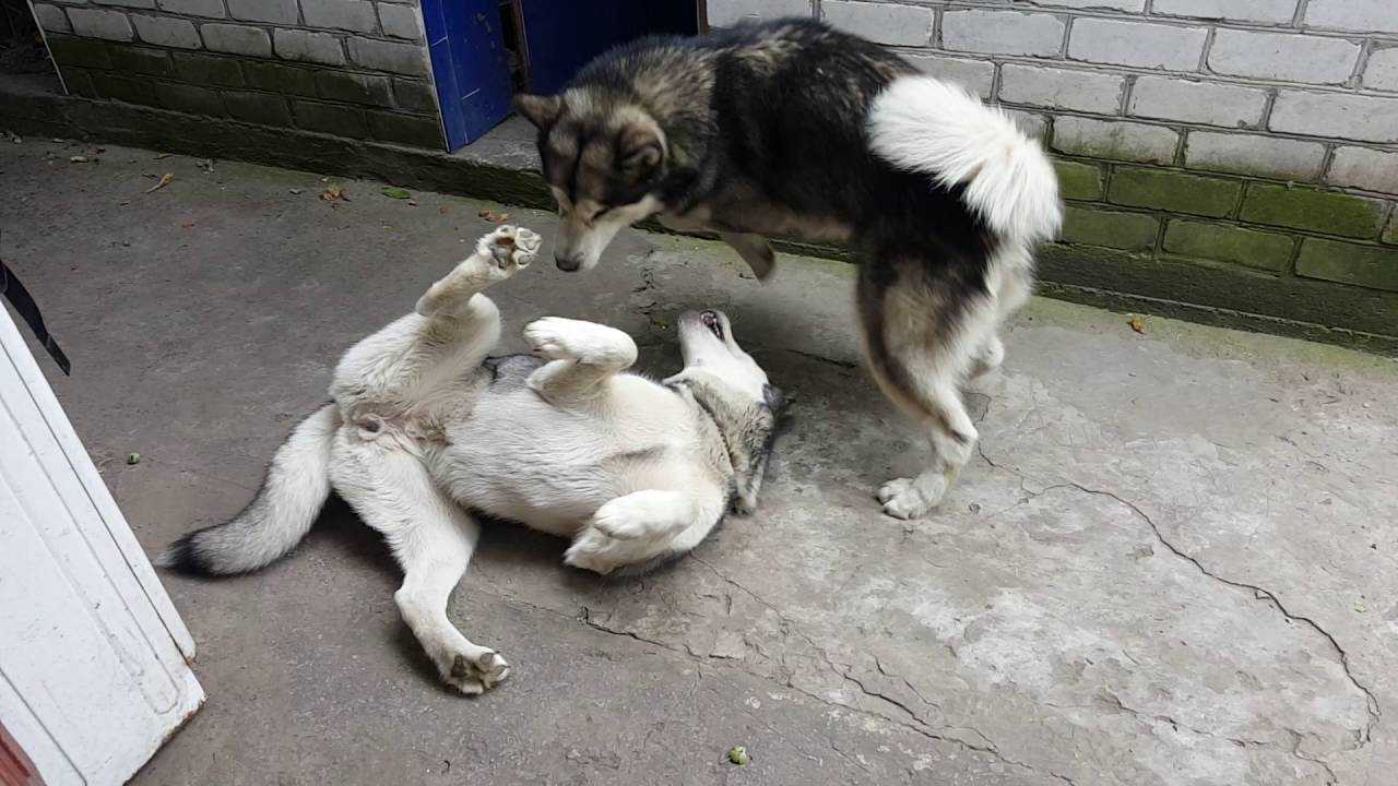 - Девочка хаски больше не прогоняет кобелей и не огрызается на них, а, наоборот, сама проявляет к ним интерес и позволяет приближаться к себе.