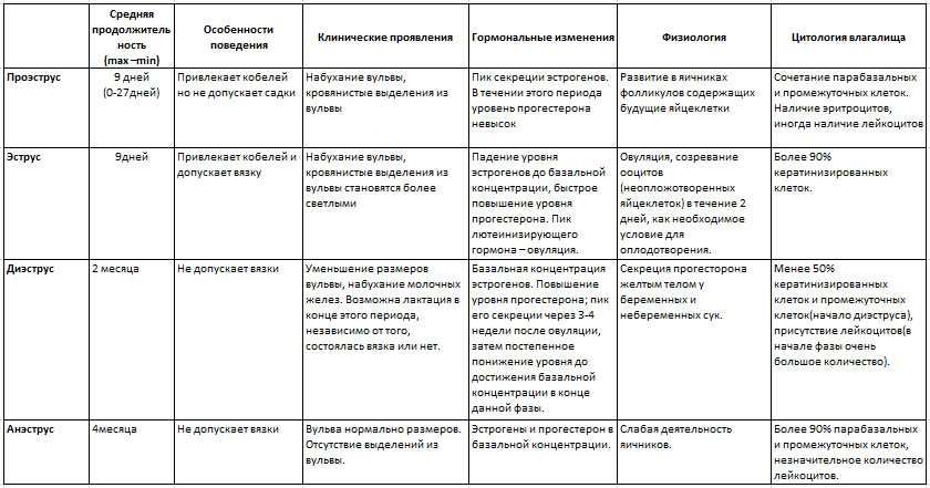 Далее описано, как проходит течка у собак по этапам репродуктивного цикла: