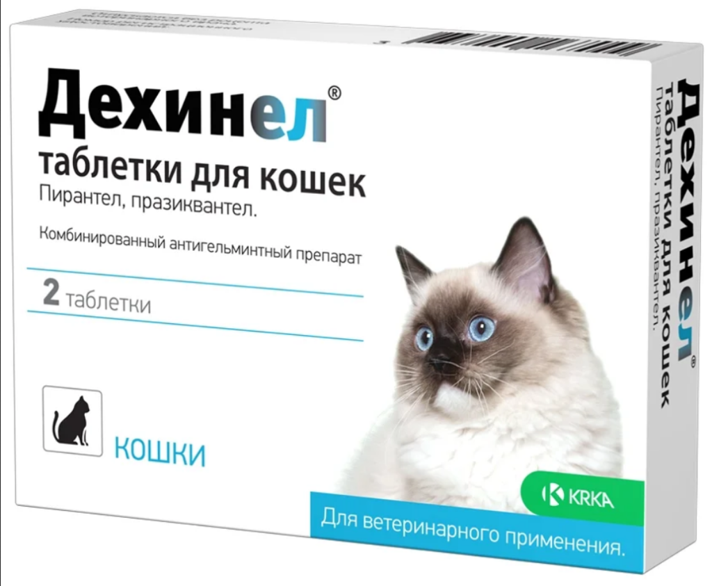 - Дехинел (KRKA, Словения), Дронтал (Elanco, Германия): 1 таблетка на 4 кг массы, нежелательно давать котятам менее 1 кг весом.