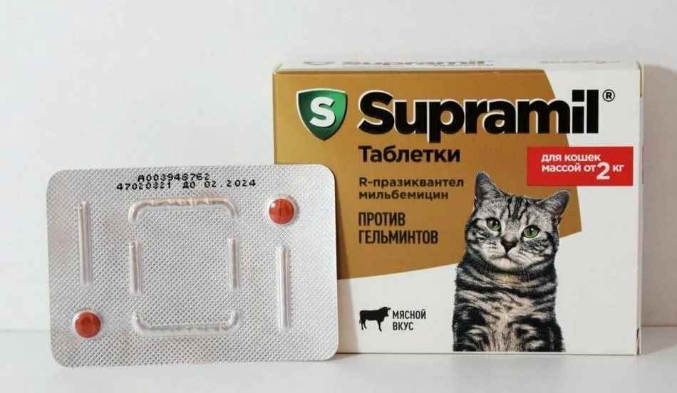 Комбинация мильбемицина и празиквантела – безопасный и эффективный вариант. Эти действующие вещества используют разные производители. Выбирайте по стоимости и наличию препарата: Мильбемакс (Elanco, Франция), Милпразон (KRKA, Словения), Супрамил (Астрафарм, Россия).
