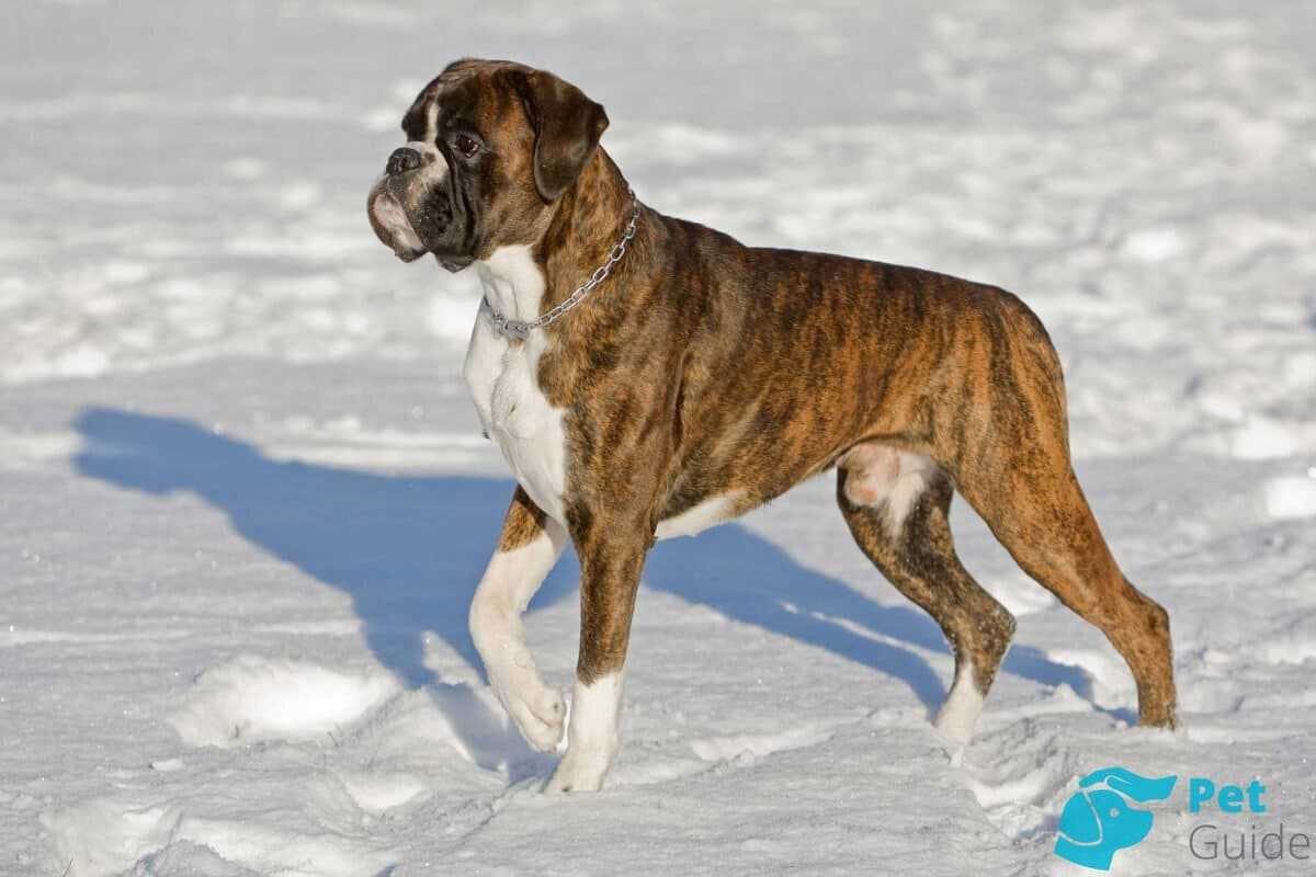 Не подходит для постоянного содержания в вольере или на улице (цепь категорически противопоказана). Боксер – порода для людей, и все его таланты раскрываются только при постоянном общении с хозяином. Немецкий боксер тяжело переносит сильный холод и жару. Всему виной брахицефальное строение морды. Летом собака может отдыхать только в тени. А в сильные морозы питомца придется одевать в попону или комбинезон, поскольку он обожает бегать по снегу, кувыркаться и нырять.
