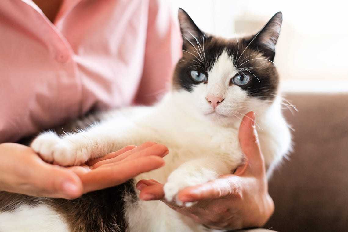 Врач может сделать выводы о наличии беременности кошки на ранних сроках при осмотре молочных желёз и живота (в 3–4 недели от вязки), а также расспросив хозяина об изменениях в поведении питомицы.