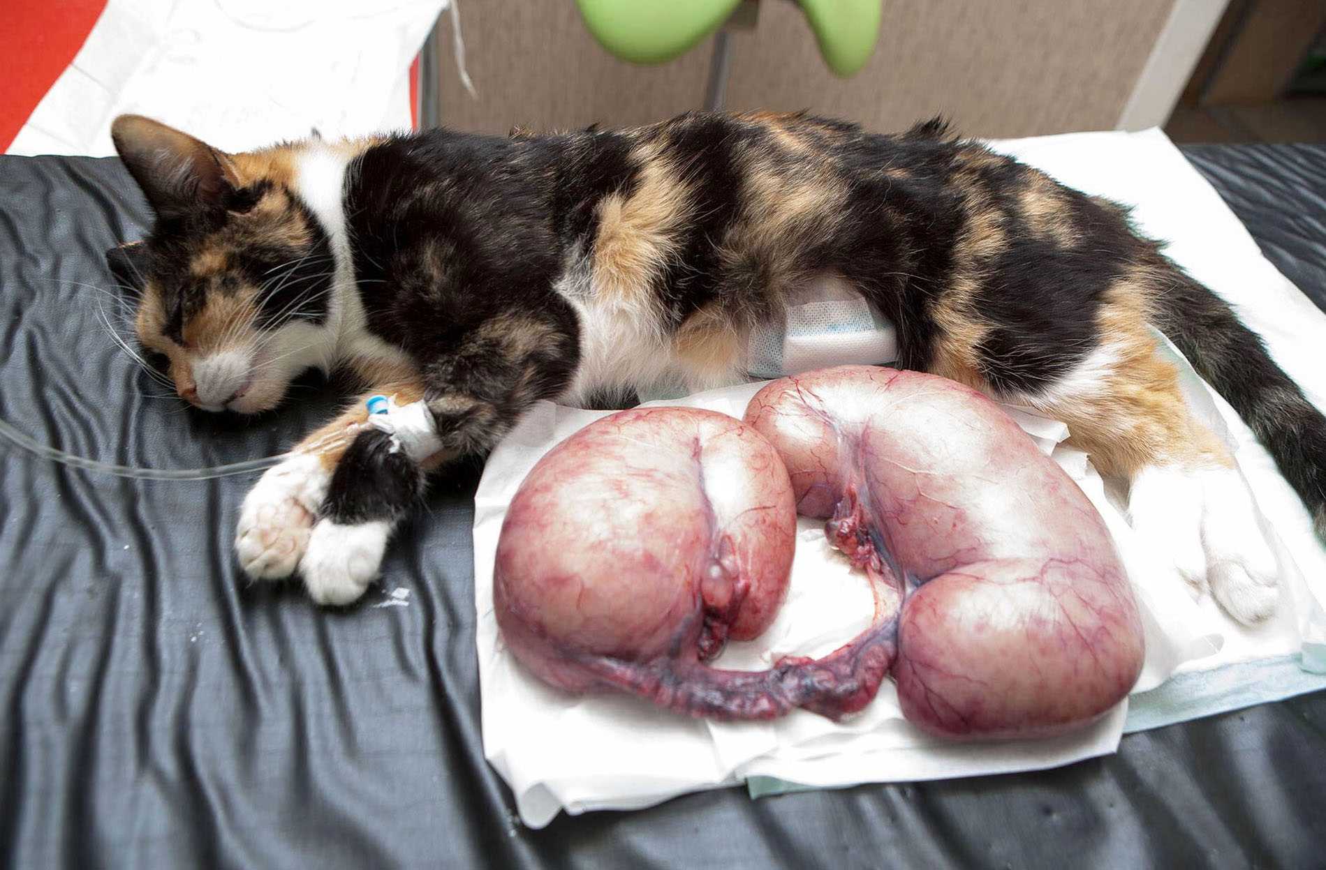 Пиометра у кошек в закрытой форме устраняется только операцией. Этот способ лечения – единственно адекватный и результативный в данном случае, повышающий шансы животного на выживание. В процессе удаления пиометры вырезаются все репродуктивные органы, включая яичники и наполненные гноем рога матки.