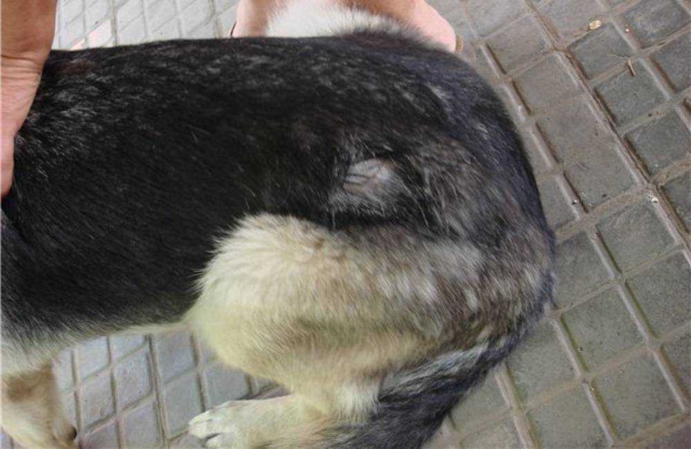Выпадение шерсти вокруг хвоста и половых органов зачастую обусловлено наличием гельминтов. Некоторые из них откладывают яйца вне организма: на нежной коже половых органов и в складках анального отверстия. Пес расчесывает эти места, в ссадины попадает инфекция, возникает воспаление с отеком.