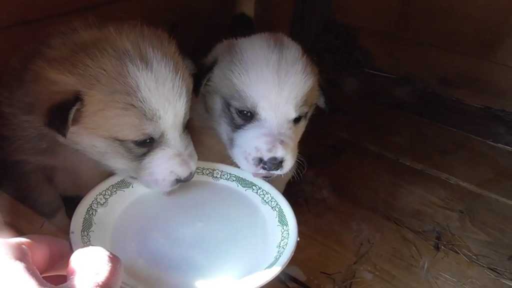 В 1 месяц щенка лайки начинают прикармливать измельченным мясом, кашами, молочными продуктами.