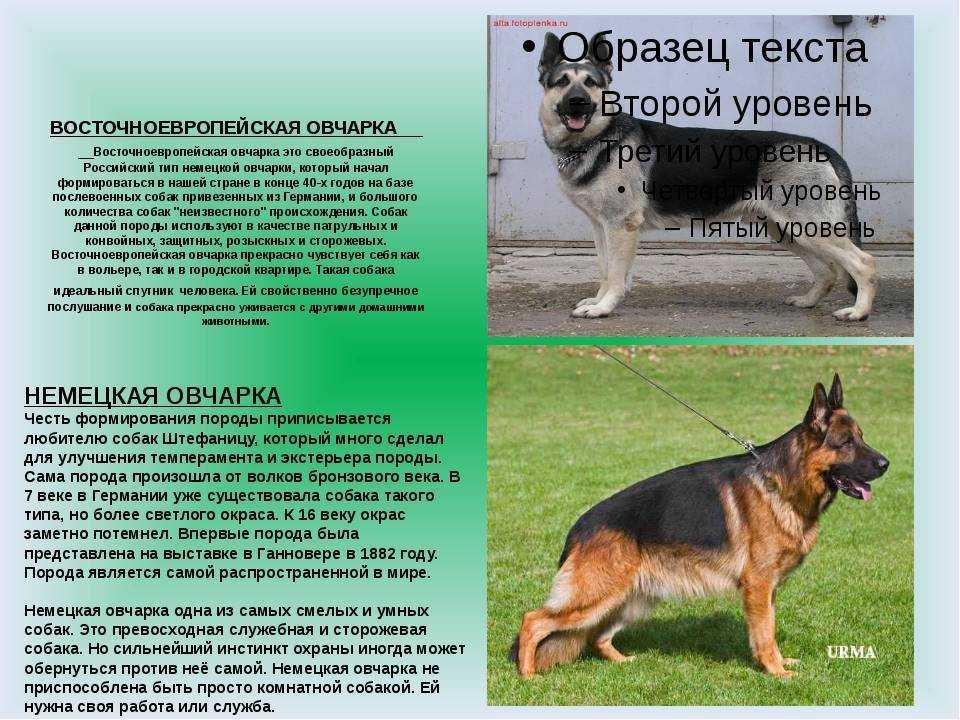 - Классификация. Восточноевропейская овчарка ввиду своей специфики относится условно к 1 группе пород собак (в некоторых справочниках по собаковеденью – к 10 или 11).