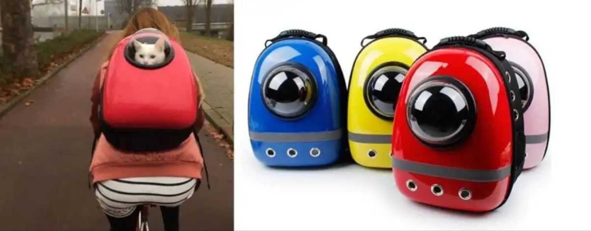 Переноски в форме рюкзака очень популярны среди велосипедистов, но животному может быть не комфортно перемещаться в таких условиях из-за большой тряски.