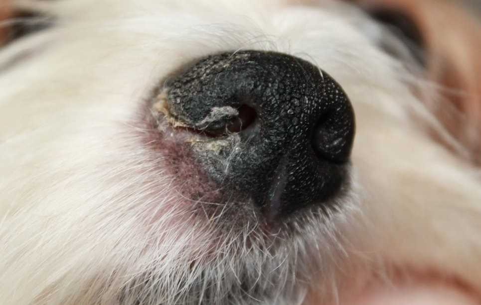Часто при насморке образуются корочки внутри носа, которые требуют удаления. Они не позволяют собаке дышать носом. Необходимо в каждый носовой проход закапать несколько капель раствора перекиси водорода.