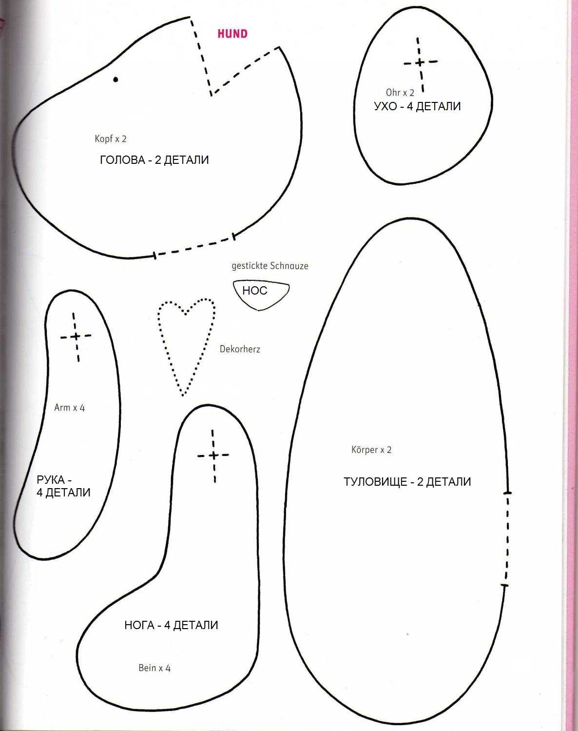 Рассмотрите выкройку тильды собаки и сделайте ее на бумаге.