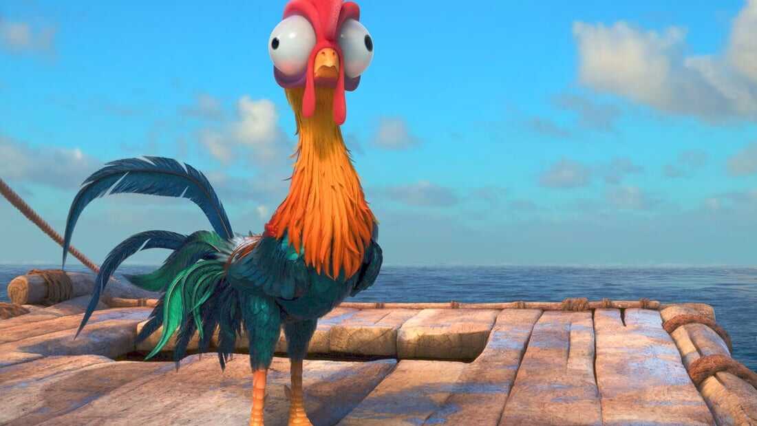 Heihei is a rooster character in the Disney movie Moana. He joins the film’s protagonist and Maui on their ocean journey accidentally. Heihei has a red comb, and blue-green feathers and is portrayed as a clueless village idiot, accident-prone, and easily distracted.