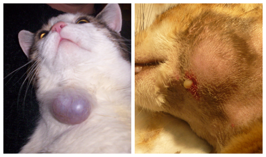 Воспаление в виде мягкой кисты или шишки на коже. Внутри нее находится много гнойного экссудата. Начинает пахнуть после того, как лопнул и жидкость вытекла на кожу. Запах особенно резкий и неприятный. Крупные абсцессы сильно ухудшают иммунитет. Кошка может подхватить инфекцию в процессе лечения. Терапия тоже не отличается скоростью. В лопнувшую рану ставят дренажи для удаления всех остатков жидкости. Приходится использовать сильные антибиотики.