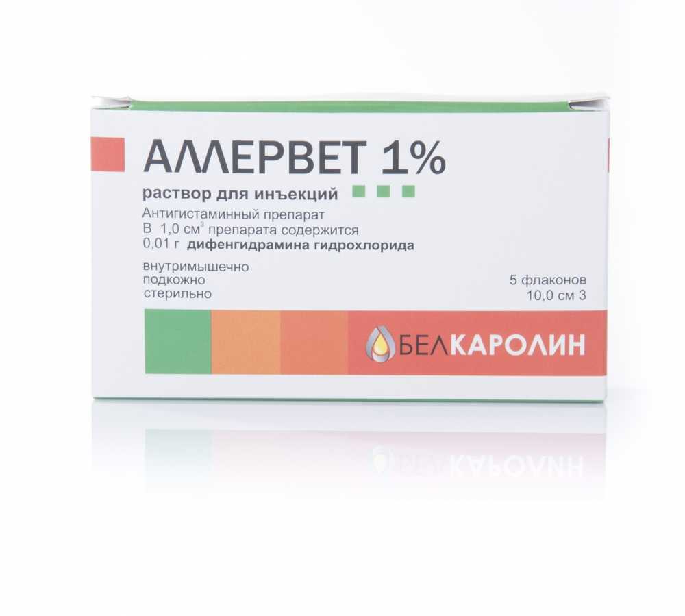 Имеет большой ряд схожих качеств с препаратом Димедрол. Может быть использован как для мелких, так и крупных собак в зависимости от выпуска концентрации. Препарат используется врачом с учетом тщательного осмотра собаки и проведения различных диагностических мероприятий. Для купирования аллергической реакции расчет дозировки составляет 1 миллилитр на 5 килограммов веса питомца.