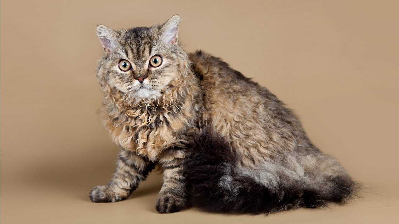 Шерсть селкирков достаточно длинна и густа (при волнистости волосков). История этой породы началась с 1987 г. в США, с одного кудрявого котенка. Дабы закрепить необычные свойства шерсти, селкирков вязали (и вяжут до сих пор, ведь считается, что полного становления породы еще не произошло) с экзотами, персами и британскими короткошерстными кошками.
