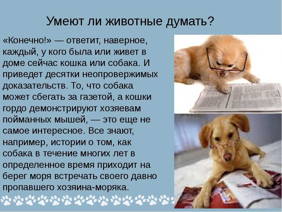 Питомцы способны запомнить отдельные слова на ассоциативном уровне, не понимая их истинного значения. Речевую функцию у них заменяет сенсомоторный интеллект, поэтому понять чувства животных можно по развитому языку тела: