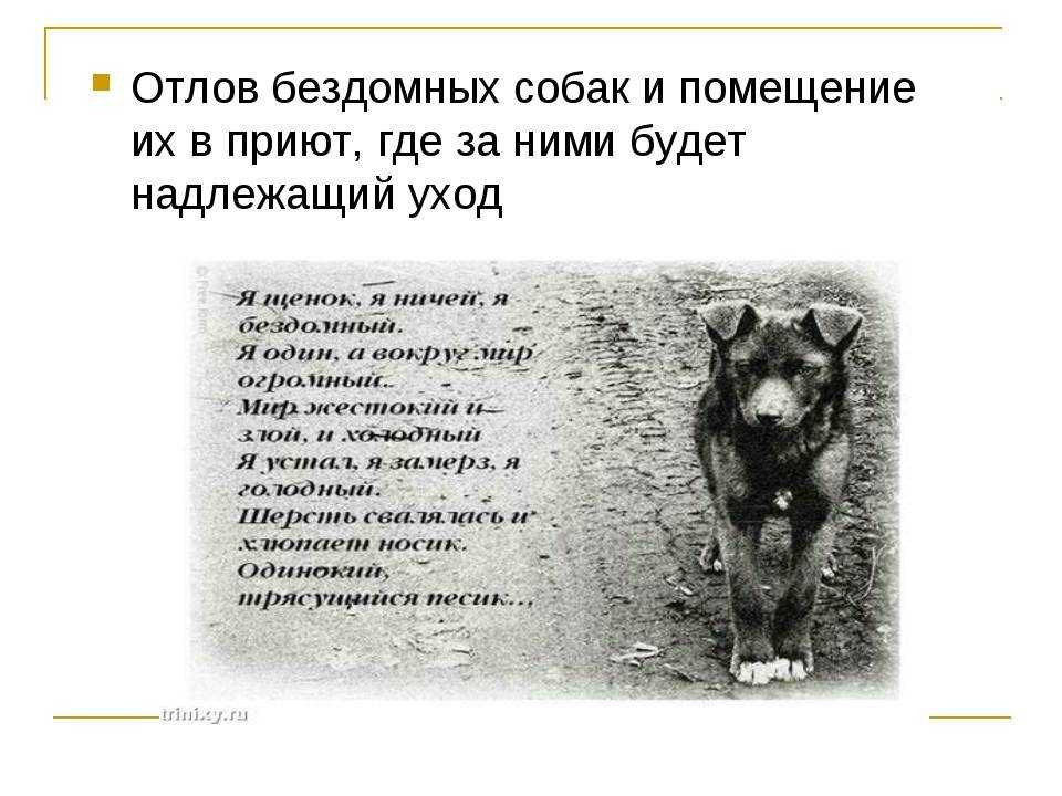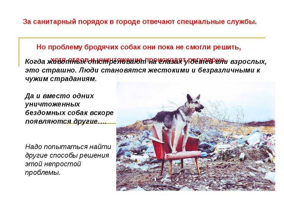Если у вас проблемы с бродячими собаками или вы хотите помочь бездомным животным, обратитесь в ближайший приют для животных. Там вам помогут решить проблему.