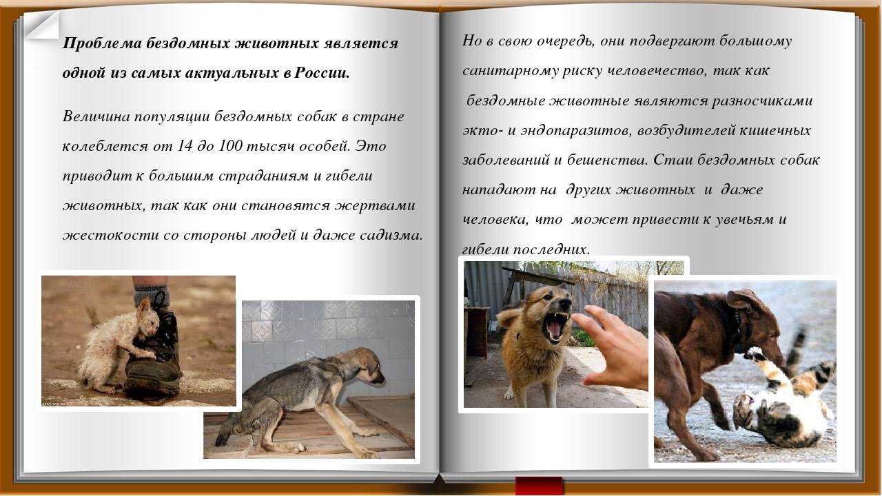 Не стоит и забывать, что укусы уличных животных опасны для человека, поскольку собаки являются переносчиками 45 видов инфекционных заболеваний. Лучше отлавливать таких собак заранее, чем потом устранять тяжёлые последствия.