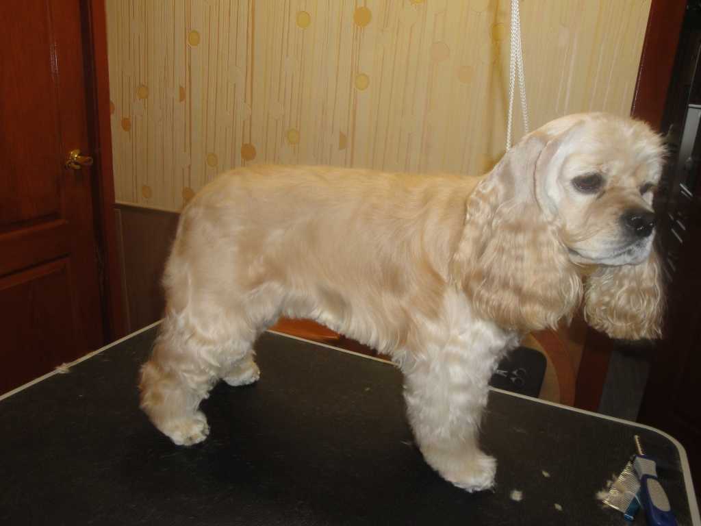 - тримминг со средней длиной – пес выглядит как обычный спаниель, но уход за волосяным покровом более простой;