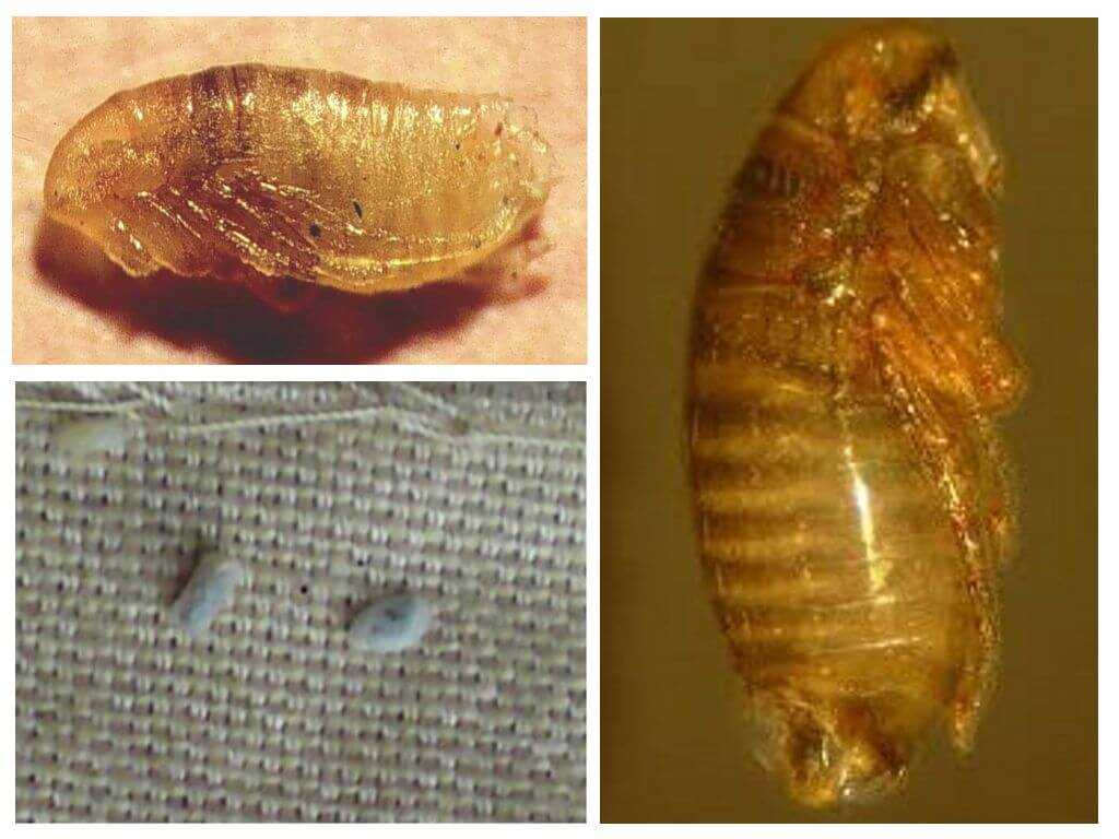 - Куколка – вокруг личинки образуется кокон. Во время созревания насекомое не нуждается в пище и устойчиво к внешним условиям, механическим воздействиям и отравляющим веществам. В этом состоянии паразит может пребывать от 10 дней до года.