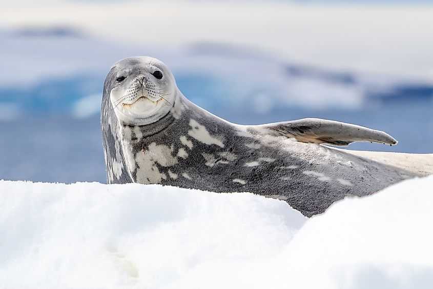 Другое более известное антарктическое животное — морской леопард. Этот одиночный вид отличается крайней агрессивностью и встречается у темно-серых антарктических млекопитающих со светло-серым брюшком.