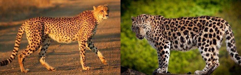 Современный ареал обитания леопарда значительно шире, чем у гепарда. Если гепард обитает только в странах Африки, и лишь немногочисленные популяции живут в Иране, то леопард распространен не только в африканских странах к югу от Сахары, но и на островах Ява и Шри-Ланка, в Непале, Индии, Пакистане, северном и южном Китае, Бутане, Бангладеше, на Дальнем Востоке в районе границы России, Китая и Северной Кореи, в Передней Азии (Иран, Афганистан, Туркменистан, Азербайджан, Армении, Турции, Пакистане, на Северном Кавказе России), на Аравийском полуострове.