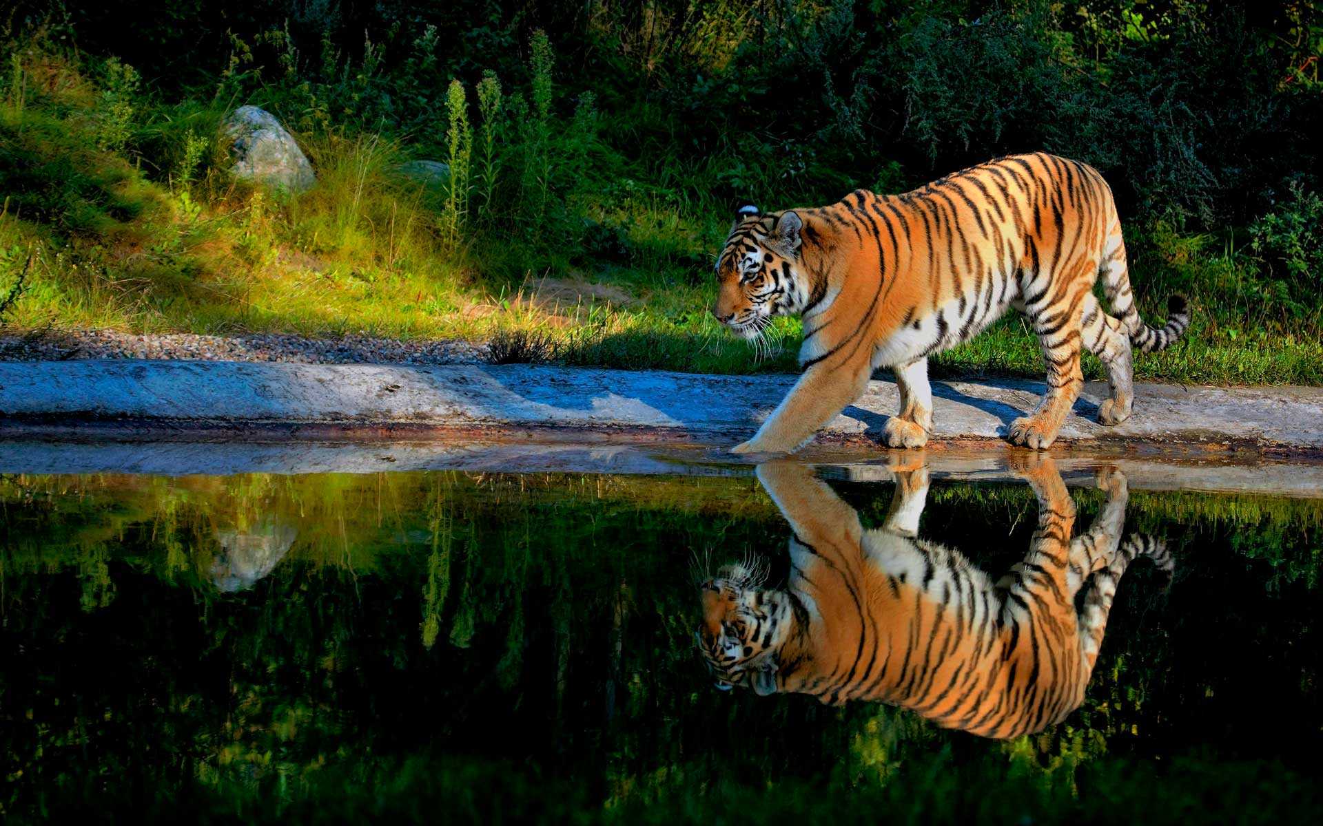 Индийский бенгальский тигр — житель жаркого климата, поэтому ему нужен постоянный доступ к питьевой воде. Неподалеку от территории тигра или прямо на ней всегда есть река или водоем, в котором животное может вдоволь напиться и в жаркий полдень искупаться в прохладном течении.