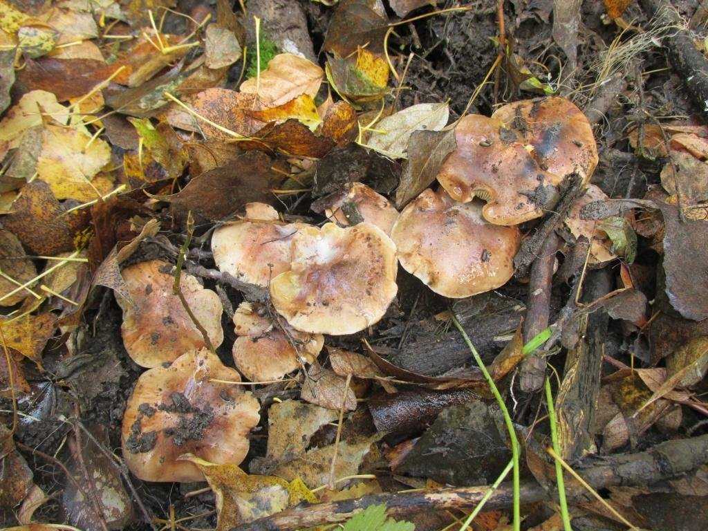 | Пластинки | Широкие пластинки на ножке темно-бурого цвета. Сначала их окрас светло-соломенный, темнеют только со временем. |