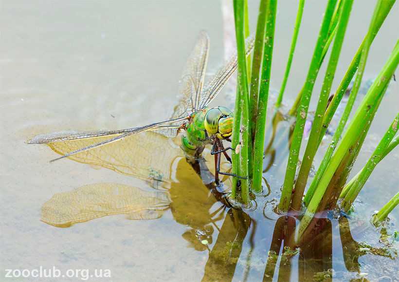 Продолжительность жизни стрекозы составляет в среднем 10 месяцев. Многие виды погибают по истечении 6 недель. Долгожители могут пережидать неблагоприятные условия (холода или период засухи) в укрытиях. Виды стрекоз, названия и фотографии. Сегодня учеными описано более 6 000 видов стрекоз, из которых на территории стран СНГ обитают около 172, образующих 52 рода. В классификации стрекоз выделяют 3 подотряда: — разнокрылые стрекозы (лат. Anisoptera); — равнокрылые стрекозы (лат. Zygoptera); — аnisozygoptera (объединяет основные признаки предыдущих подотрядов). Разнокрылые стрекозы (лат. Anisoptera) Характерной особенностью подотряда разнокрылых стрекоз является перпендикулярное расположение крыльев в состоянии покоя и различие в их размере (передние крылья стрекозы гораздо больше задних). Самыми известными представителями разнокрылых стрекоз являются: Стрекоза дозорщик-император или дозорщик-повелитель (лат. Anax imperator), относящийся к семейству Коромысловые (лат. Aeshnidae) — крупное насекомое с размахом крыльев до 11 см и длиной тела около 8 см. Грудь имеет зеленую окраску с черными полосками. Мужские и женские особи различаются по окраске крыльев и брюшка. У самок стрекоз цвет крыльев золотисто-желтый, а брюшка – голубовато-зеленый с крупными пятнами красновато-коричневого оттенка. Самец стрекозы этого вида отличается бесцветными крылышками и голубым брюшком, на котором видны темно-бурые пятна. Стрекозы появляются в середине июня, период лёта длится 1,5 месяца. Предпочитают порхать вблизи стоячих или слабопроточных водоемов. Дозорщик-император считается одной из самых крупных стрекоз в России.